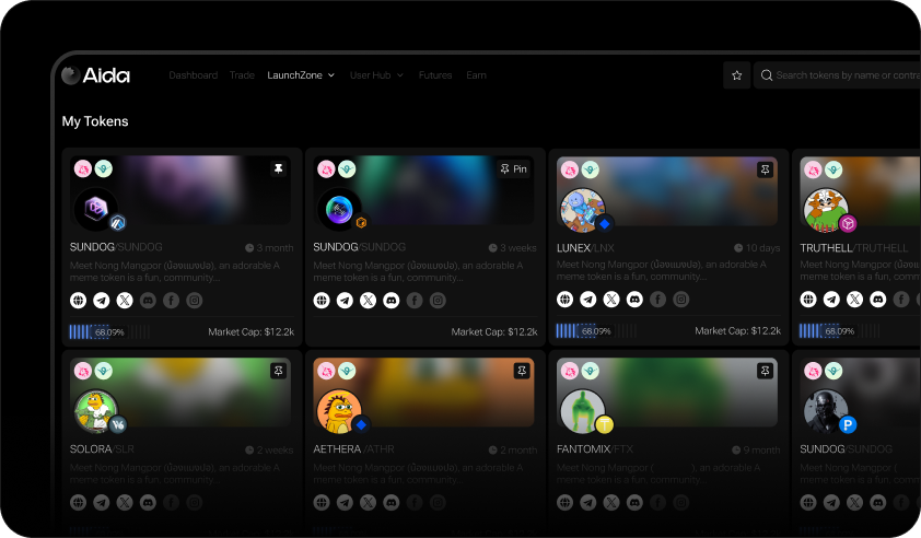 Monitor performance: view market cap, token age, social links, and engagement levels.
