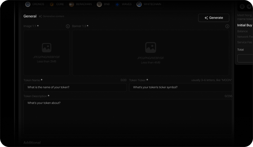 AI-Generated: Describe the vibe and let our AI do the rest—optimized name, symbol, visuals, and market-fit.