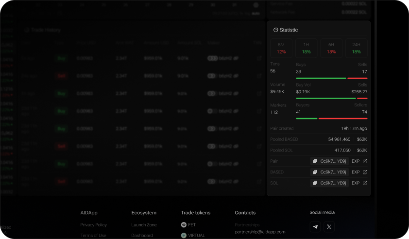 The Statistics panel gives you a live snapshot of trading activity and liquidity data for the selected token pair. It helps you understand market flow, sentiment, and pool health in just a few seconds.